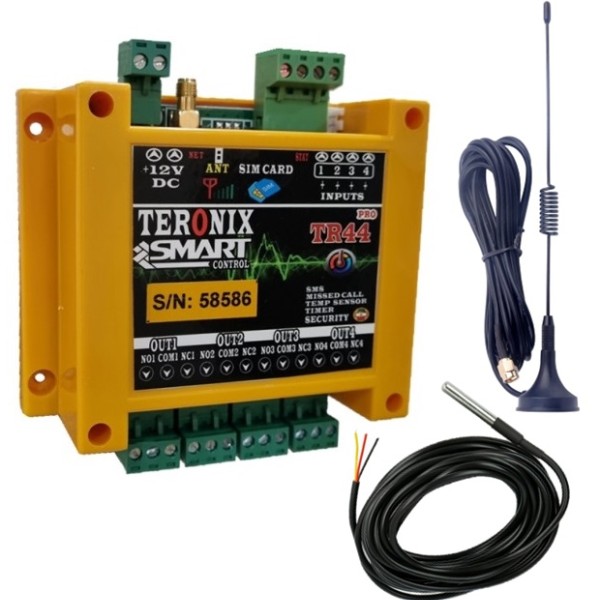 بوسیله ی این دستگاه امکان مشاهده و کنترل دما از فاصله ی هزاران کیلومتر میسر خواهد شد. دستگاه فوق مجهز به سنسور دمای دیجیتال با قابلیت سیم کشی تا 100 متر می باشد. این دستگاه مقدار دقیق دما را اندازه گیری نموده و بر روی صفحه ی موبایل شما نمایش خواهد داد. علاوه بر این دارای 4 خروجی رله جهت روشن و خاموش نمودن تجهیزات الکتریکی از راه دور و مجهز به سیستم ترموستات هوشمند جهت کنترل اتوماتیک گرمایش و سرمایش مطابق با دمای مطلوب شما می باشد. لازم به ذکر است که دستگاه قادر است تغییرات بحرانی مانند دمای غیرمجاز ، قطعی برق و سایر آلارم های سیستمی را بوسیله ی پیامک و تماس به 5 شماره ثبت شده در حافظه ی خود مخابره کند.